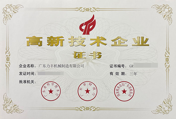 必赢机械制造有限公司于2016年成为国家高新技术企业